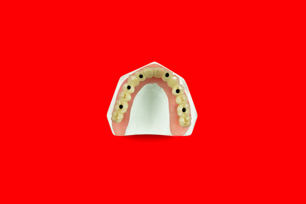 Bridge sur pilotis en résine pour réhabilitation complète ou partielle sur implants. Esthétique et confort de mastication.